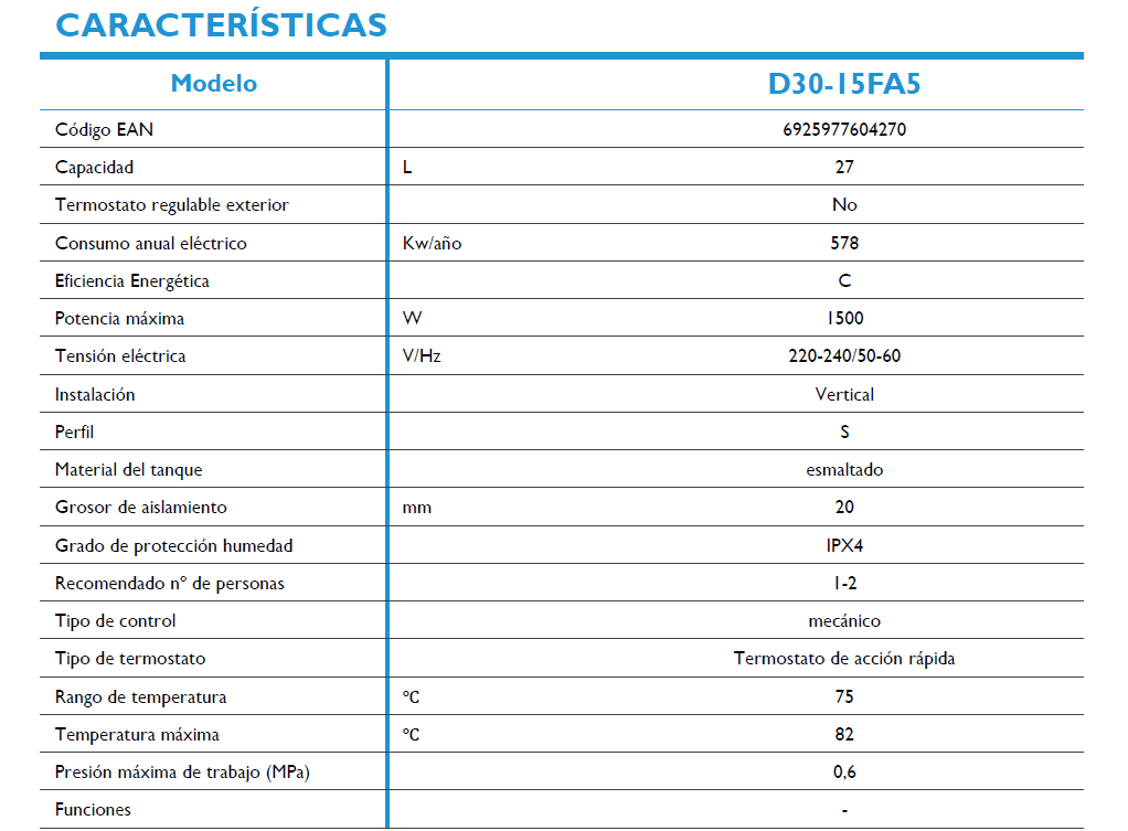 Tanque con esmalte Zafirepara mayor resistencia a la corrosión y el sarro. Cuenta con una resistencia de acero inoxidable SUS31 para un rendimiento más duradero y fiable.