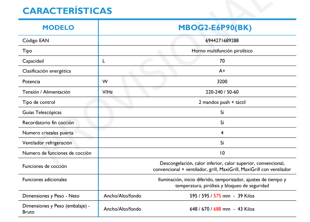 • Autolimpieza pirolítica