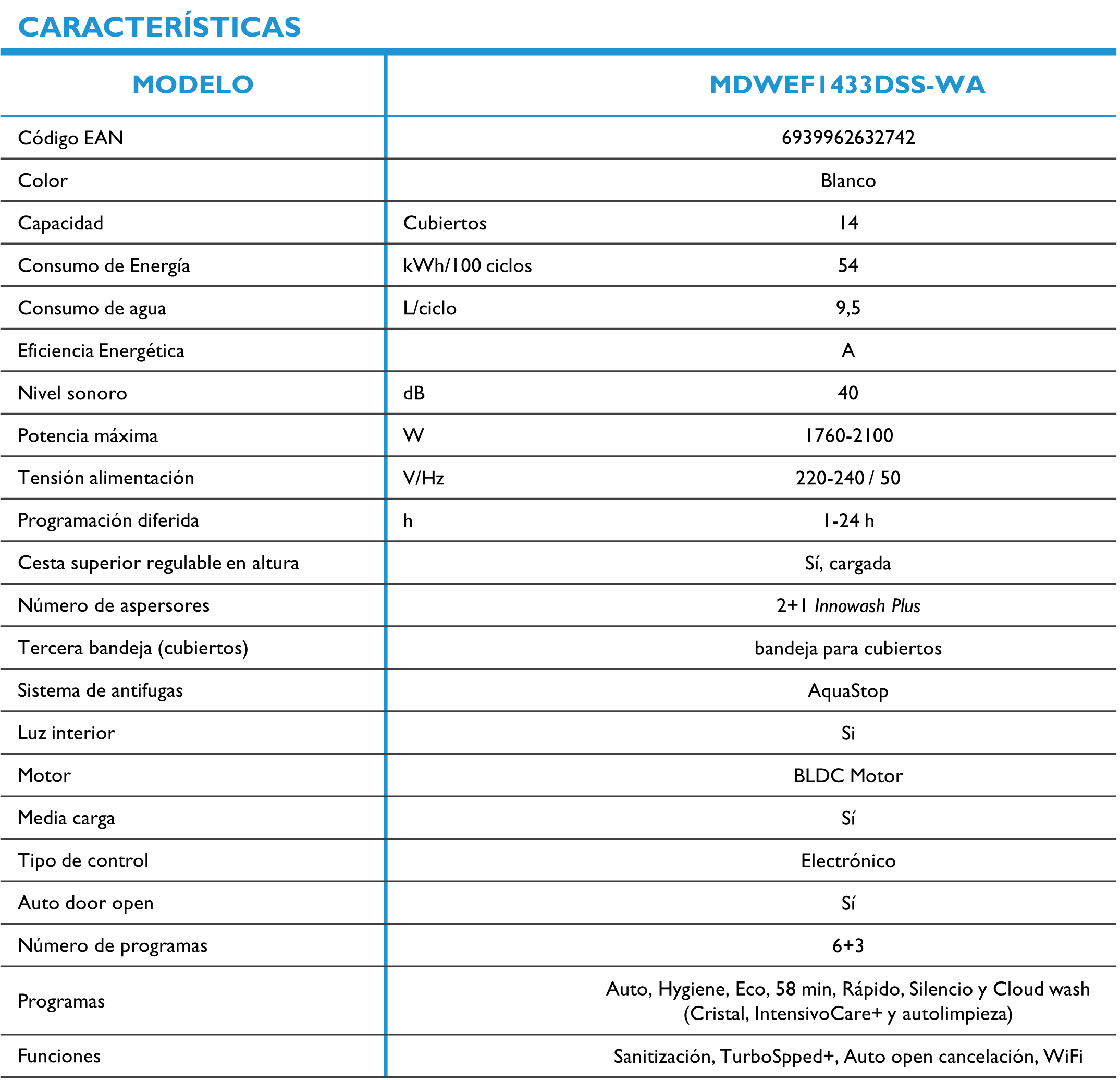 El programa Turbo Speed+ reduce hasta un 50 % la duración del ciclo de lavado, manteniendo la misma calidad de limpieza y secado que un programa estándar.