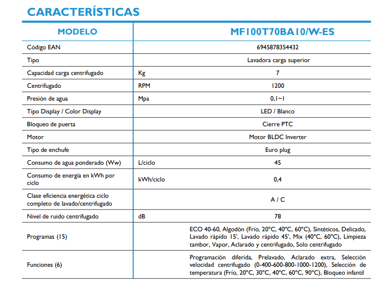 La función de lavado rápido en 15 minutos ahorrará tiempo sin renunciar a la calidad de lavado.